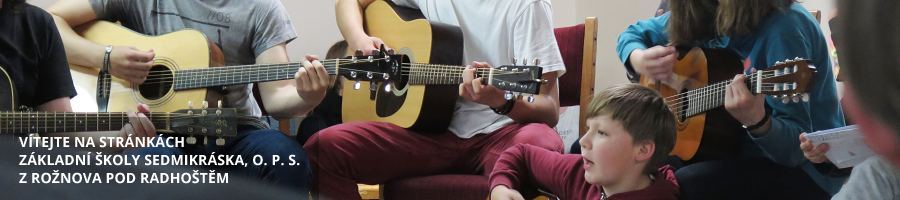 Výsledky testování SCIO.Vyhodnocení literární soutěže "O poklad strýca Juráša". V literární soutěži, kterou pořádá tradičně Městská knihovna v Rožnově pod Radhoštěm, byly letos oceněny příspěvky dvou žaček Sedmikrásky. Anička Nejezchlebová získala 1. místo a Sára Posadová 2. místo se svými příběhy "Jenda a Manda" a "Plavecké závody". A téma letošního ročníku bylo: Lež jako věž. Gratulujeme! Slavnostní vyhodnocení je ke zhlédnutí na youtube kanálu knihovny.