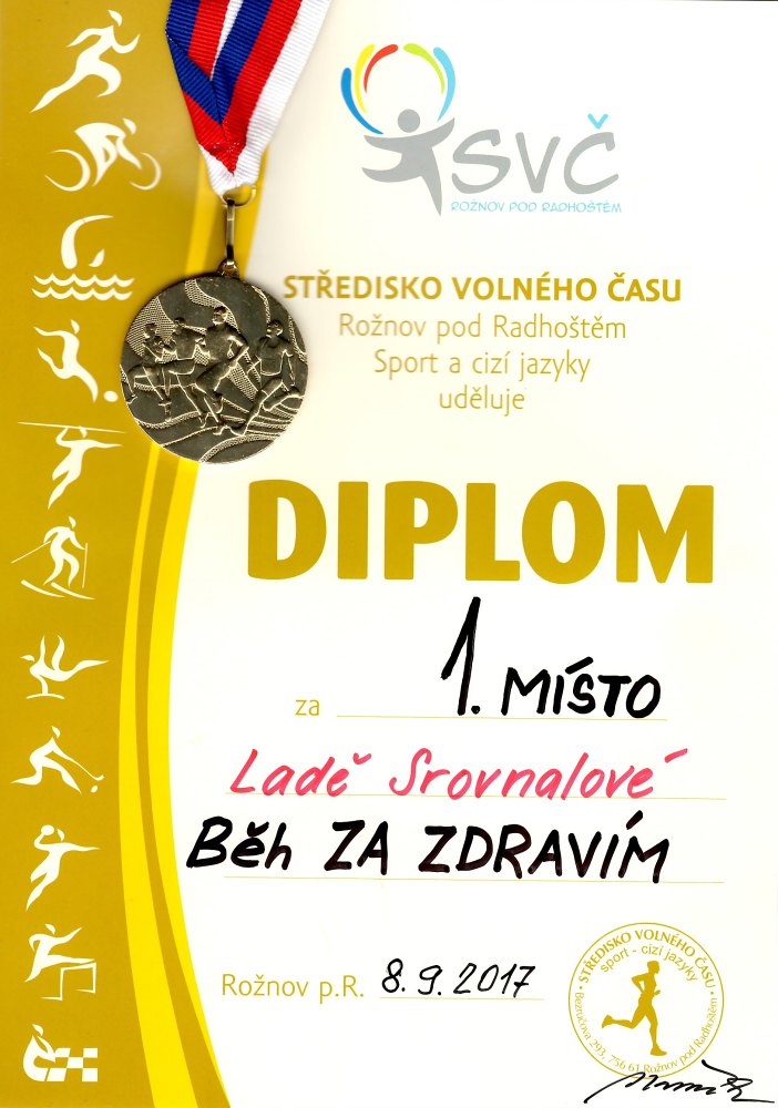 Sportovní úspěchy Gratulujeme dvěma úspěšným sportovcům hned na začátku školního roku. Ladě Srovnalové za 1. místo v Běhu za zdravím a Přemkovi za 1. místo na Mezinárodním šachovém festivalu ve Valašské Bystřici.