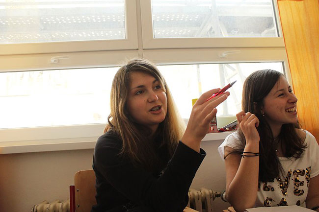 stolu k učitelské tématice ve Francouzském institutu nebo na konferenci
