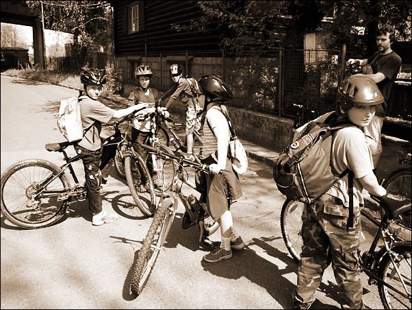 Dálkoví cyklisté od čtvr»áků před zpáteční cestou