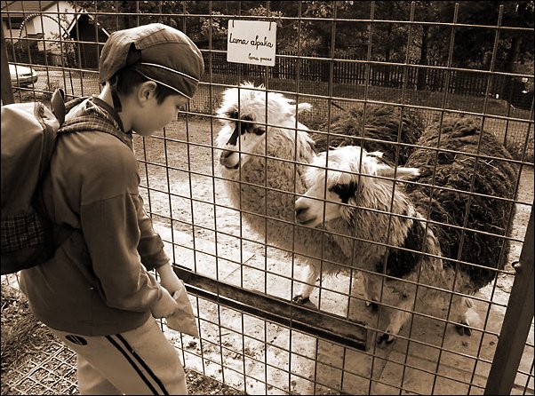 Kubík krmí lamy