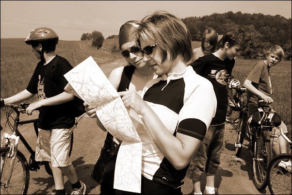 Orientační přestávka při cyklovýletu na Hukvaldy