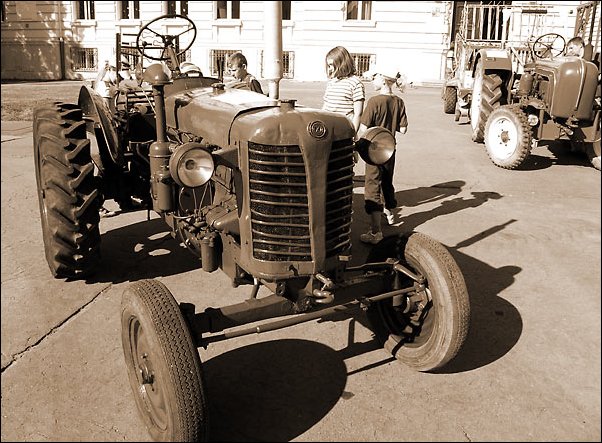 Výstava traktorů (traktor v pozadí vyrobila firma Porsche)