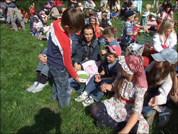 Prvňáci rozdávali vlastnoručně vypěstovaný hrášek