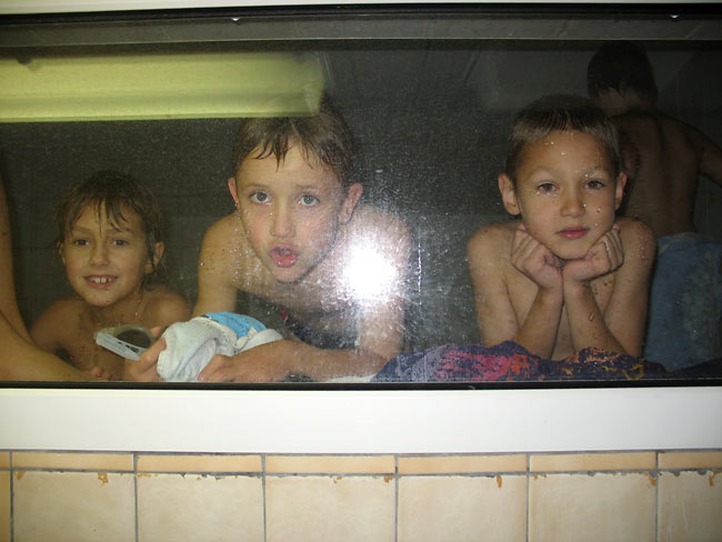 Laura odpočívá v malém bazénu