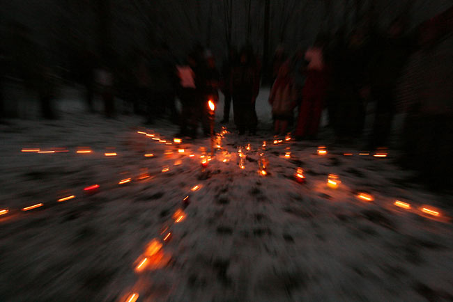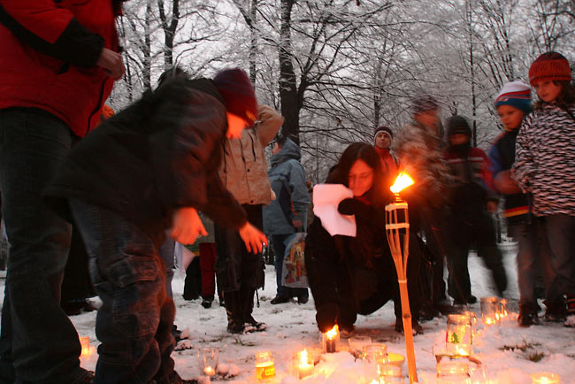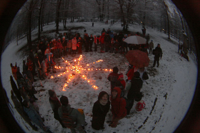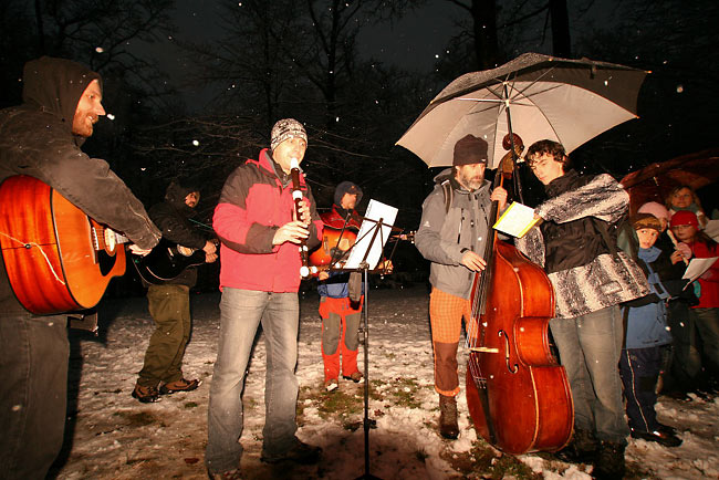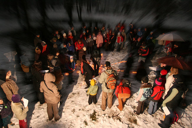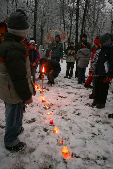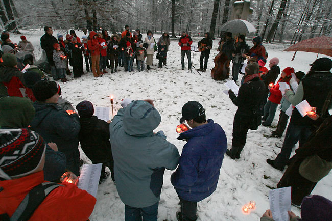 Tentokrát jsme Vánoce přivítali na čerstvém vzduchu. Když jsme se scházeli u sochy "Loď" v městském parku, padal mokrý sníh a pomalu se stmívalo. V kruhu se svými blízkými jsme si zazpívali několik koled, Lennonovu "Happy Xmas" a ze svíček sestavili paprsky vánoční hvězdy. Po poslední písni jsme si ještě chvíli popovídali, popřáli si a rozešli se na prázdniny…