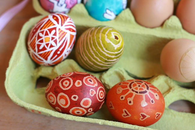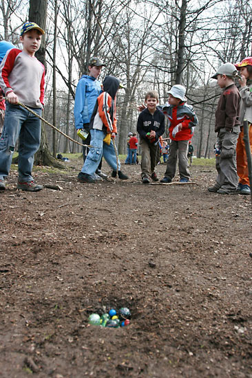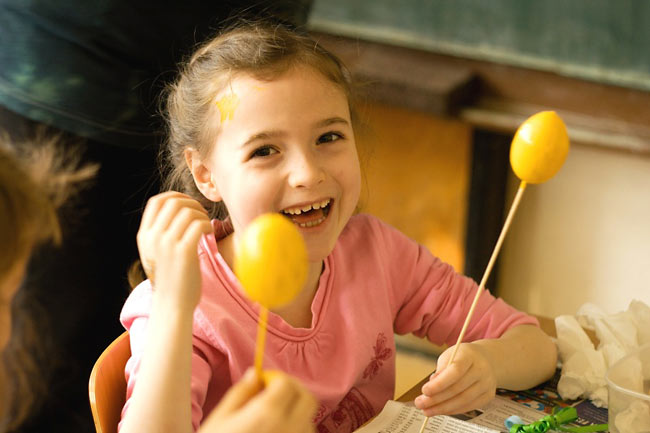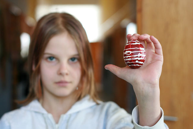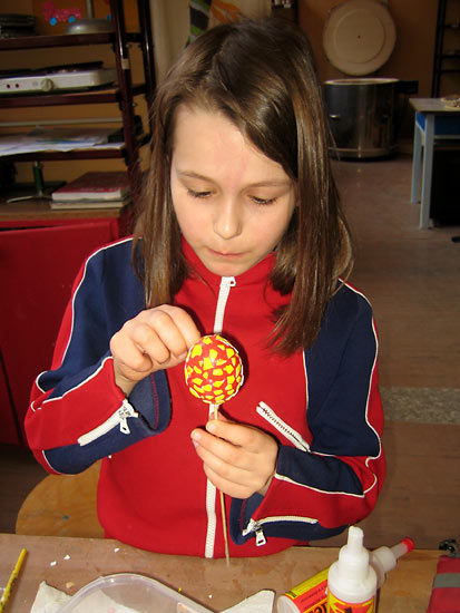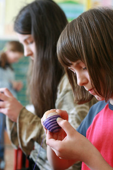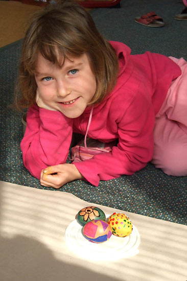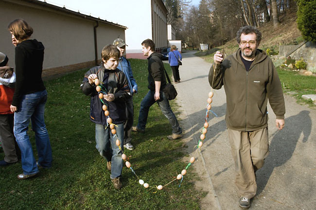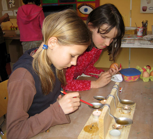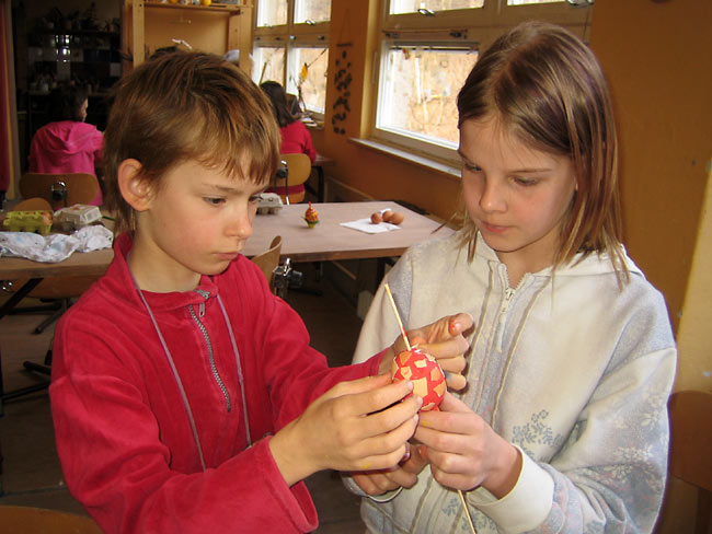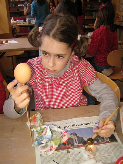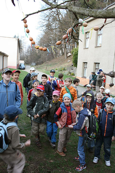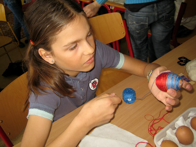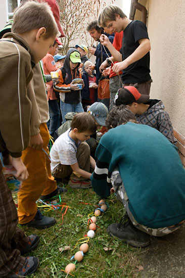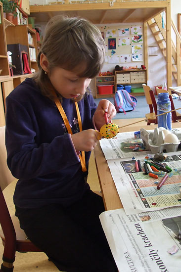 také zhotovit velikonoční řetěz a zahrát si kuličky), holky zdobily vajíčka