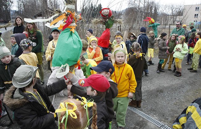 barvy. Následoval rituál vítání jara, ukončený bosým oběhem školy a výroba