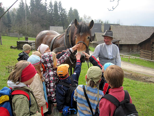 Valašské muzeum nám nabídlo další ze svých výukových programů – jaro na dědině. A tak jsme nabídky využili a vydali se nahlédnout do příbytků a ohrad domácích zvířátek a jejich mláďátek, do zelenajících se zahrádek a valašských chalup. Tam nám přiblížili život lidí za časů našich babiček a prababiček. Děti si poslechly jak to chodilo u ovčáků, viděly postup zpracování vlny od ovečky až po vlněný kabát, poznaly nové jarní rostlinky a ve valašské škole si ověřily své znalosti při jedné z vyučovacích hodin. Pěkně připravený program, můžeme jen doporučit.