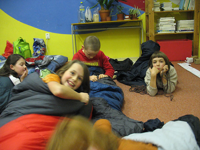 Po příchodu do školy jsme povečeřeli, podívali se na film a usnuli na koberci