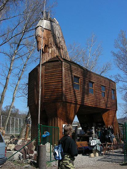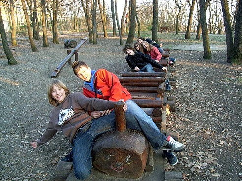 Vyzvednutí klíčů, potřebné instrukce, shození batohů v klubovně a podobně bylo otázkou asi čtvrt hodiny. Poté jsme si to už ulehčeně šlapali na hřiště poblíž. Natočili jsme na Lukášův foťák dvě videa – jednou jsme použili dřevěný vláček, podruhé pískoviště.