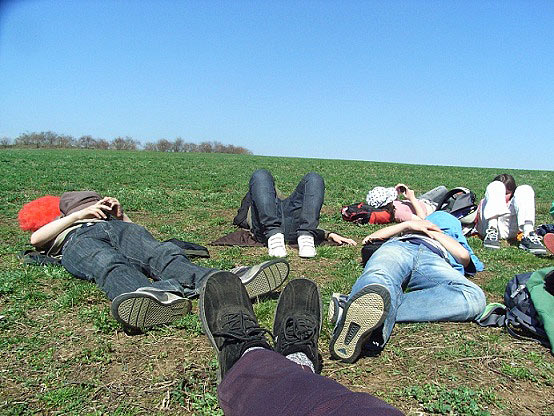 Po skončení projekce v planetáriu jsme si my, sedmáci, dali venku na lavičkách malou přestávku na svačinu. Když jsme dosvačili, šli jsme si k autobusu vyzvednout batohy a poté jsme se plahočili na metro.