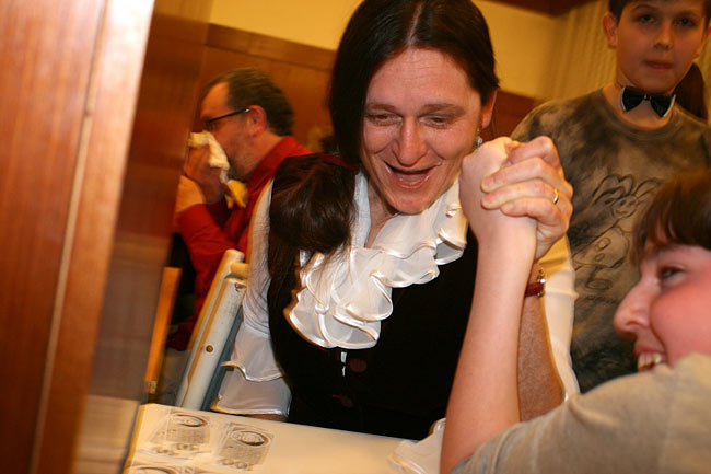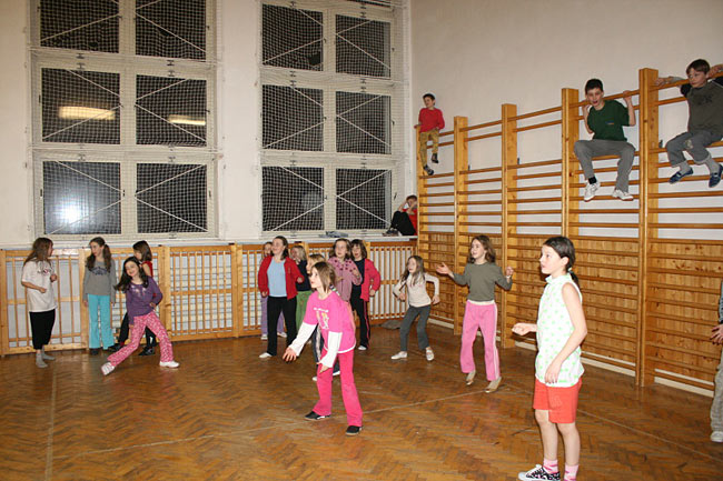 Po sportování na sněhu se večerním živlem stala voda. V jídelně se uskutečnila