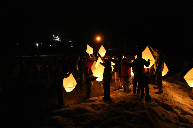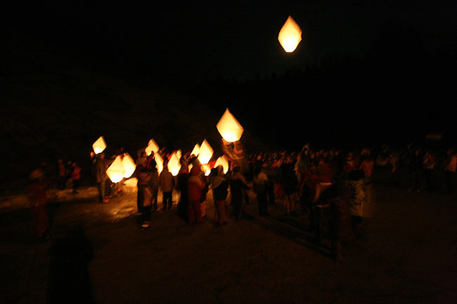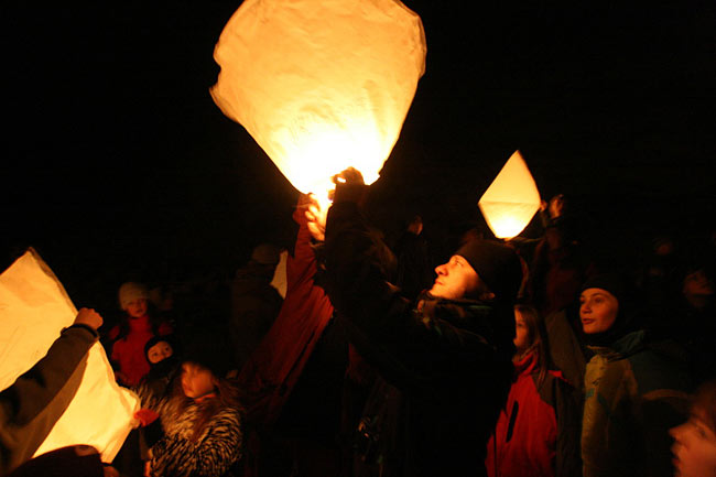 Po setmění došlo na vypuštění vlastnoručně vyrobených balónů. Zpočátku