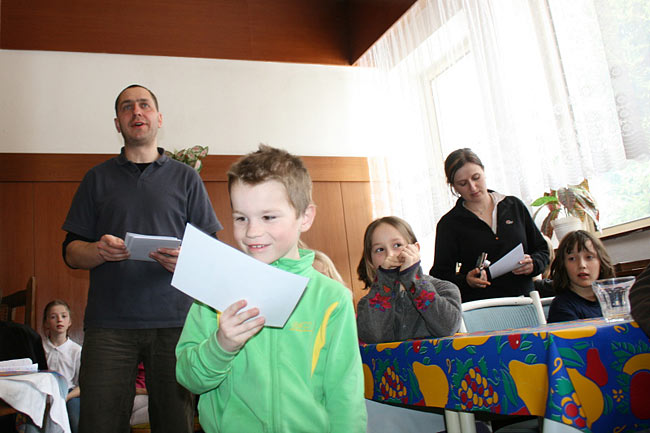 Uklidili jsme pokoje (někteří stihli i vyběhnout na sjezdovku) a sešli se do jídelny k závěrečnému setkání. Dražily se věci ze zastavárny, předávaly se diplomy a potom už jsme nastoupili do autobusů…