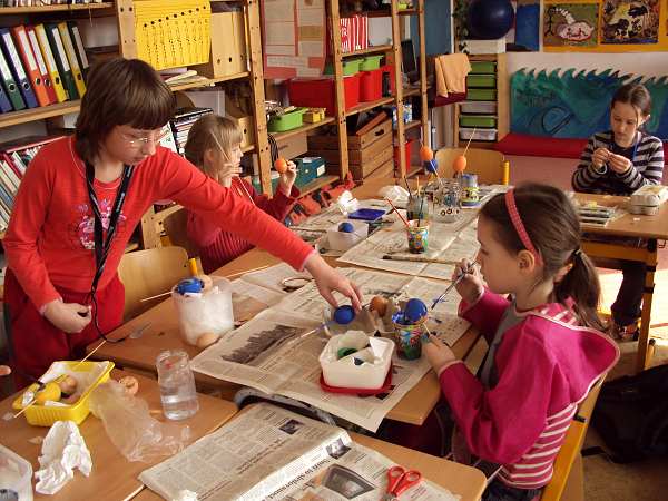 ve škole a malovaly kraslice. Vajíčka jsme zdobily několika technikami.