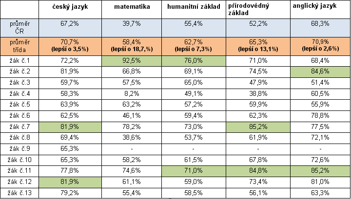 Průměr je z cca 3000 žáků, kteří se testování zúčastnili v ČR.