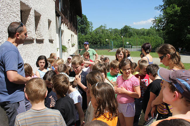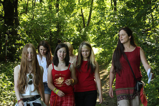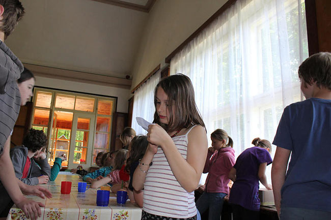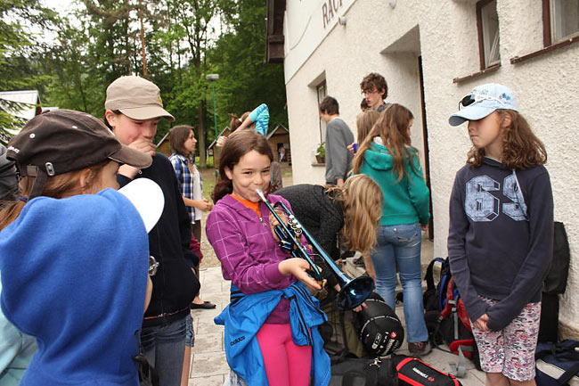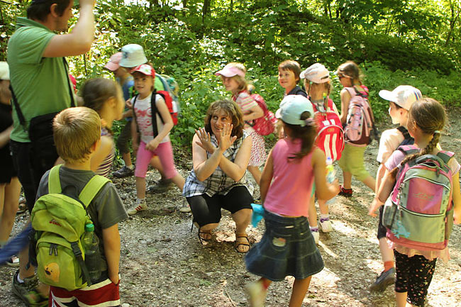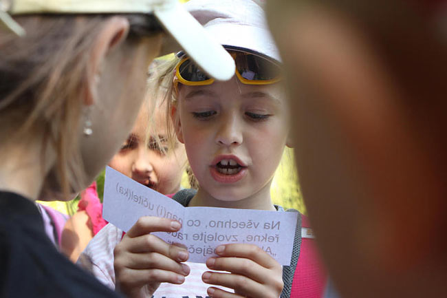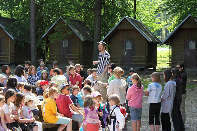 Program: dopolední výlet do jeskyní "Na pomezí", sportování, branný závod smíšených družstev, výtvarná tvorba – landart, vyhlášení výsledků závodu, noční hra pro 5. – 9. ročník.