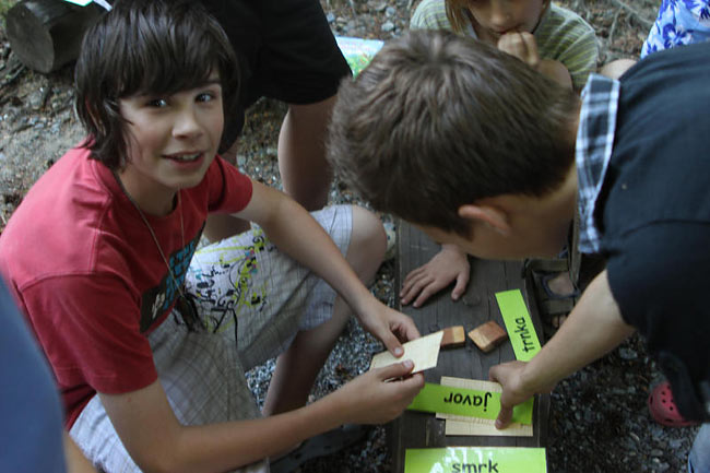 Program: cesta z Rožnova, ubytování v Račím údolí, seznámení se s areálem, obálková hra a poznávání okolí tábora, putování po poznávacích stanovištích, vyhlášení inzerátů.
