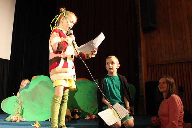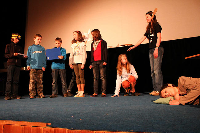 Prvňáčci představili svou verzi Perníkové chaloupky a po jejich písničkovém představení následoval program 7. třídy. Děvčata četla z "pseudodeníku" sepsaného na podzim na Lopeníku a Monika s doprovodnou kapelou zazpívala písničku od Tracy Chapman. Páťáci sehráli divadlo o počítačové technice, osmáci pobavili diváky příběhy, osvětlující klady a zápory některých povolání.