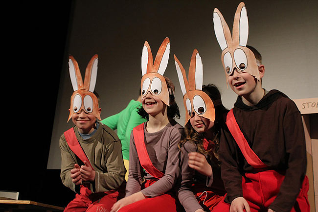 Předvelikonoční slavnost zahájili druháci příběhem O kouzelném lese. Štafetu převzala 3. třída se scénkou Špim a písničkou Želvy. Následovalo "rapování" anglické abecedy v čísle 6. třídy Chicka Chicka Boom Boom.