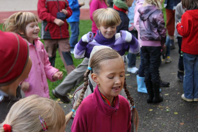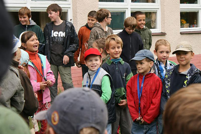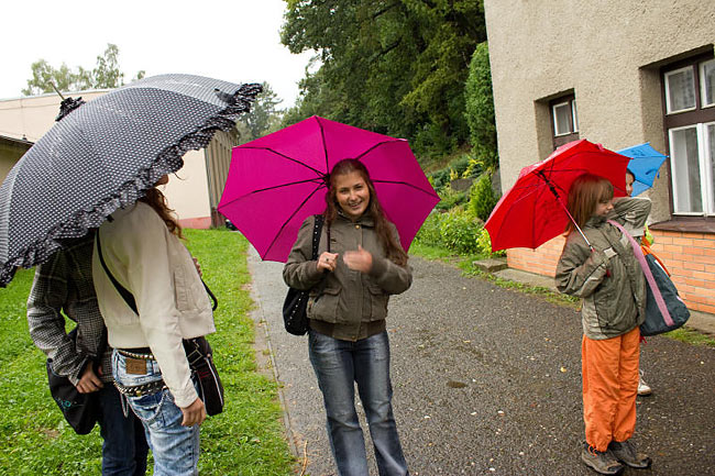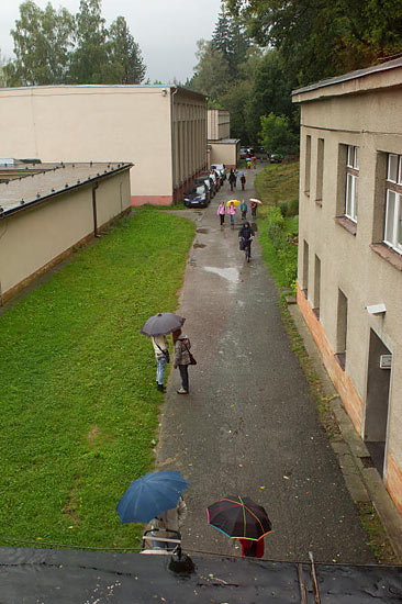 Počasí se moc nepředvedlo – po půl osmé začalo pršet a houstnoucí déšť znemožnil společné setkání před školou. První školní den jsme tedy strávili ve třídách.