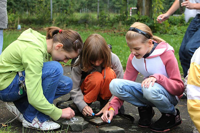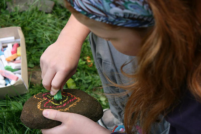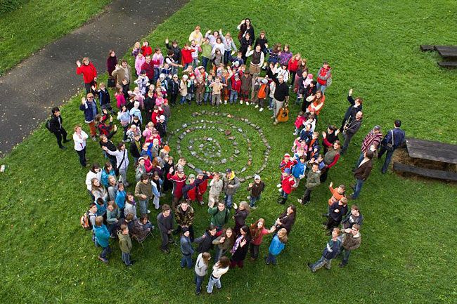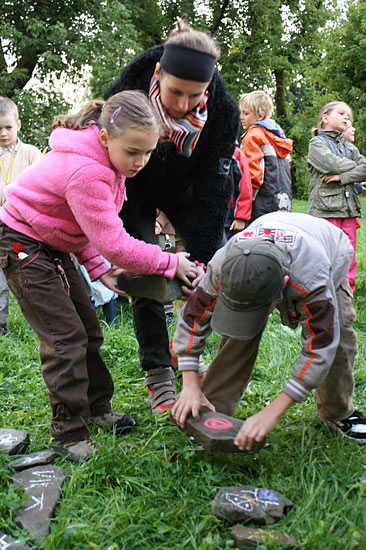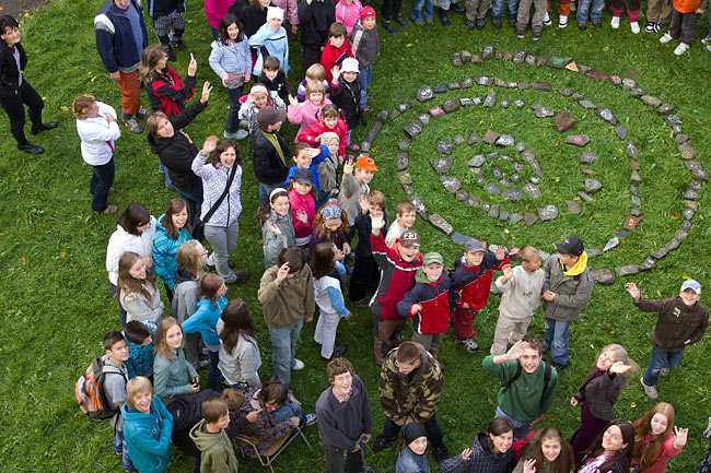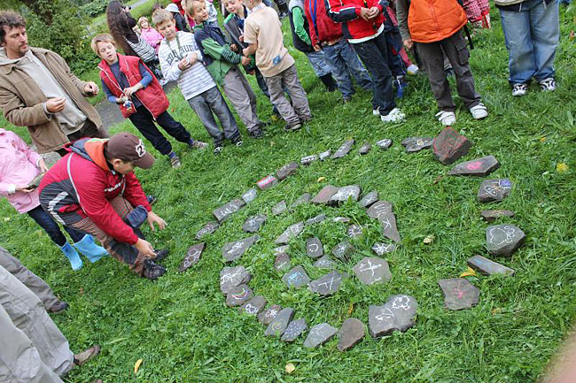 Sedmikrásky jsme z říčních kamenů postavili spirálu, symbol pospolitosti