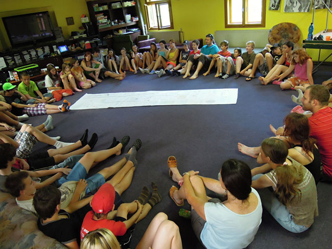 Ve středu jsme se sbalili a vyrazili jsme do města Jeseník. V Jeseníku jsme nejdříve rozeslali pohlednice domů a pak zamířili do lázeňského parku, kde mnoho z nás otestovalo tamější bazénky s ledovou vodou. Cestou domů jsme se ještě vyšplhali na stratovulkán Velký Roudný, tyčící se nad nádrží Slezská Harta. Poslední zastávkou byly Rázovské tufity (zasvěcení už ví, že tufit vznikla ukládáním sopečného materiálu na dně jezera spolu s jinými horninami).