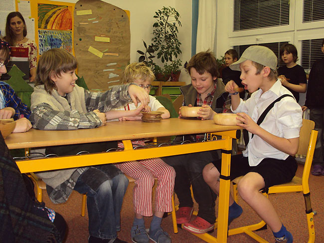 Jako každý rok i tento se děti těšily na přespání ve škole. Ještě před tím, než jsme zapluli do spacáků, zašli jsme si společně do kina na Tintinova dobrodružství. Potom jsme šli do školy, povečeřeli jsme, zahráli hry a… Děti opravdu dlouho nemohly usnout, neustále někdo štěbetal a potají se chichotal. Nakonec jsme všichni usnuli… Druhý den se nikomu nechtělo vylézt z teplého pelíšku, natož se učit.