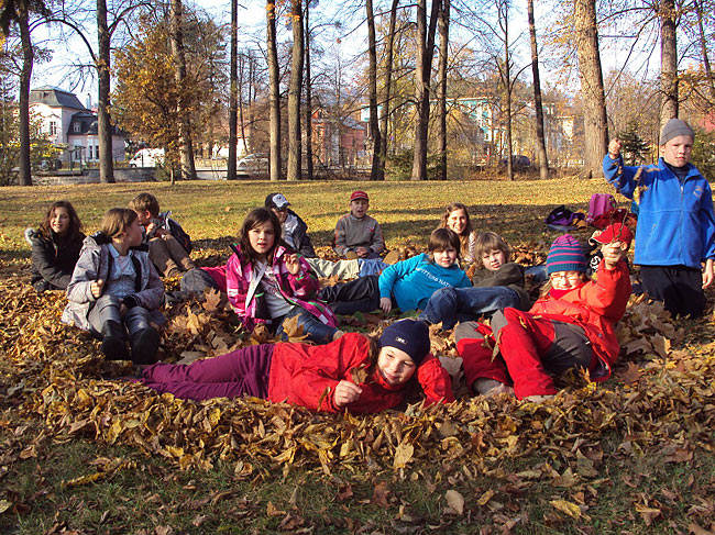 V hodinách výtvarky jsme si zařádili v barevném listí, celá třída jsme vytvořili mandalu.