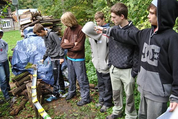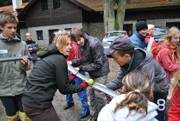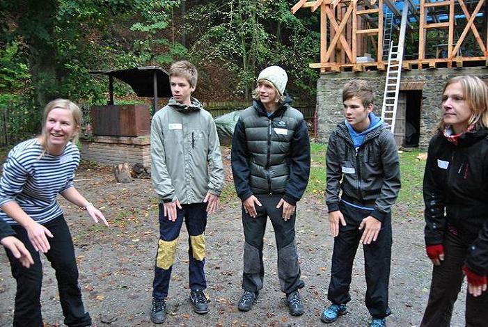 V úterý po snídani (systém švédských stolů s cornfleaky, nabídkou čaje, mléka i džusu, různých pomazánek a talířů ovoce a zeleniny u každého jídla) proběhl pravidelný každodenní servis – připomenutí a zhodnocení předchozího dne. Pak jsme si po skupinkách vytvořili společná pravidla, která budeme dodržovat. Odpoledne bylo ve znamení ekosystémů, predátoři požírali zástupce nižších článků řetězce a ke všemu se množili v různých ročních obdobích. Zněly písničky "Už jsou tu Vánoce…", "Je jaro…", "Summertime". Rychlost pohybu brzdily skluzy a srážky. Při zpětné vazbě jsme si uvědomili, čím kdo může přispět v práci týmu, jaká role mi vyhovuje (vedoucí, vykonavatel pokynů) a komu můžu důvěřovat, že dodrží dohodnutá pravidla. Večer jsme si vykládali po skupinkách o svých vzorech, čím nás zaujaly a po setmění jsme absolvovali cestu noční tmou s několika otázkami v tomto duchu. Závěr byl u Býčí skály ve světle pochodní. Den skončil rituálem, kdy zaznělo i dost kritických připomínek k chování jednotlivců.