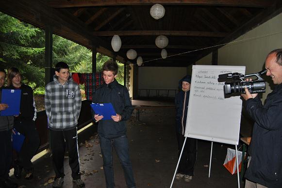 Středa byla ve znamení projektů. Nejprve řešení problémů malé vesnice, kdy starosta nemá zájem nic měnit (kanalizace, dětské hřiště a obchody), týmové natáčení sociálních spotů (role režiséra, kameramana, scénáristy, výtvarníka, herce), nápadník projektů v naší škole, obci. Večer pak vyvrcholil festivalem natočených spotů spolu s předáváním cen (Titanik, Rambo, zdravotní klaun ). A nechyběl ani závěrečný rituál.