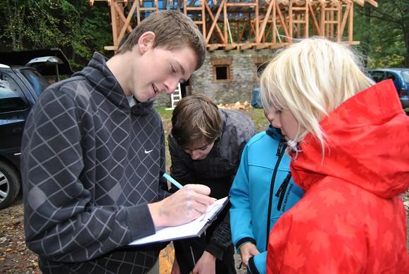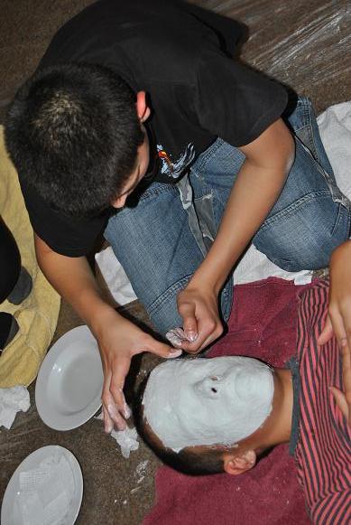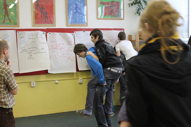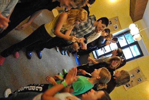 Ve čtvrtek po servisu jsme využili nedeštivého počasí a venku ve skupinkách prověřili znalosti pojmů i schopnost komunikace slovem, pantomimou a kresbou (běhavé aktivity). Odpoledne jsme vytvořili týmy v jednotlivých třídách a pracovali na projektech, které budeme řešit a realizovat i v následujících měsících. Nejtěžší bylo domluvit se, kdo za co bude odpovědný a stanovení termínů. Před večeří proběhly hry na důvěru (Autíčka, Ulička ), které nás připravily na poklidnou a intimní aktivitu – tvorbu masek. Večer proběhl poslední rituál a kytarový večírek.