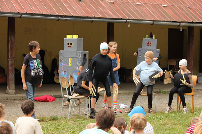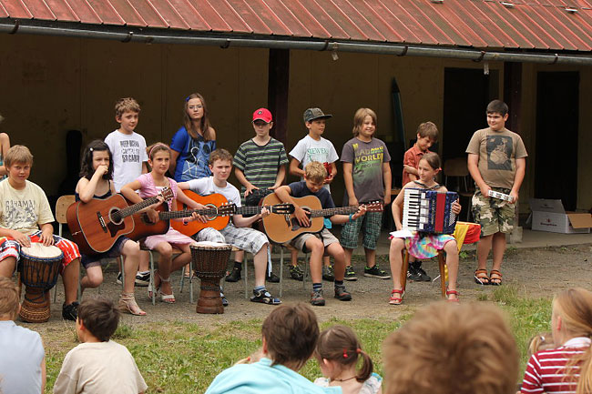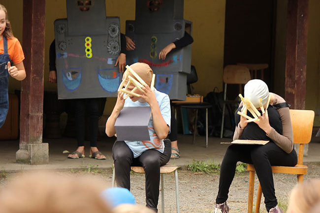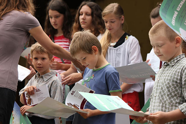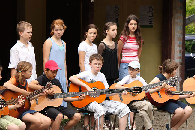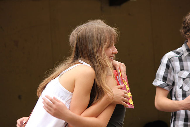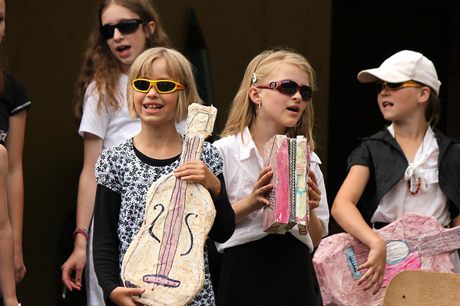 "Mírně" opožděná fotoreportáž z posledního dne školního roku. Písničky a divadlo, vítání (prvňáčků) a loučení (s deváťáky), začátek prázdnin…