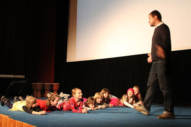 Prvňáčci se představili divákům, zarapovali a promítli animovanou pohádku