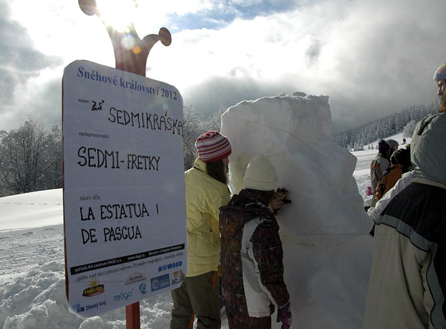V sobotu 21. 1. 2012 se naše škola Sedmikráska, v rámci aktivity Učení mimo lavice v evropském projektu Spolu, zúčastnila již po šesté Sněhového království na Pustevnách. Tento ročník probíhal dva víkendy za sebou a byl rozdělen na soutěž sochařů a soutěž škol. Spolu s námi se do této akce zapojily Základní škola Dolní Bečva a Základní umělecká škola Valašské Meziříčí.