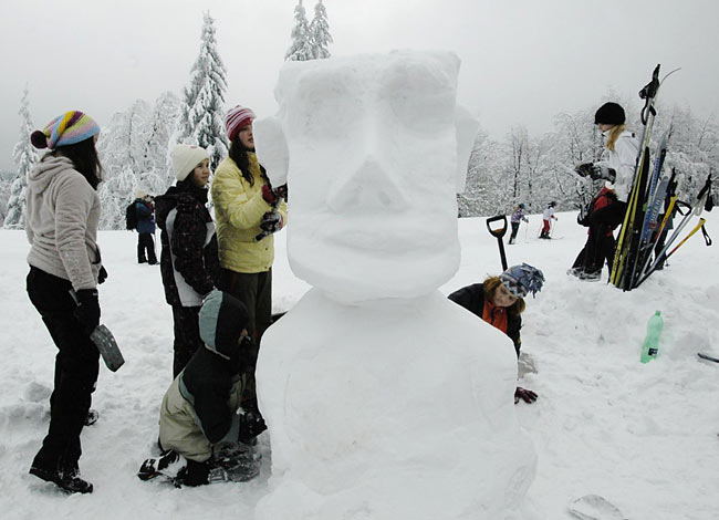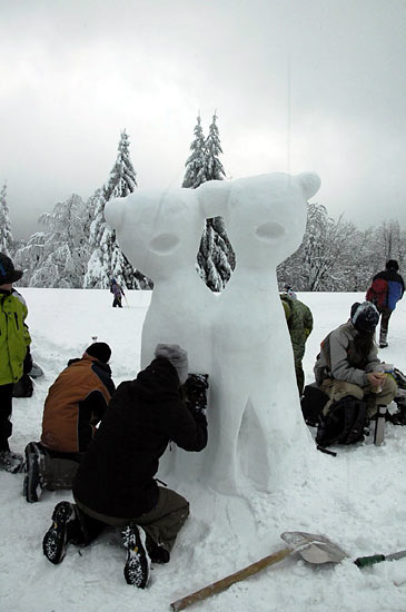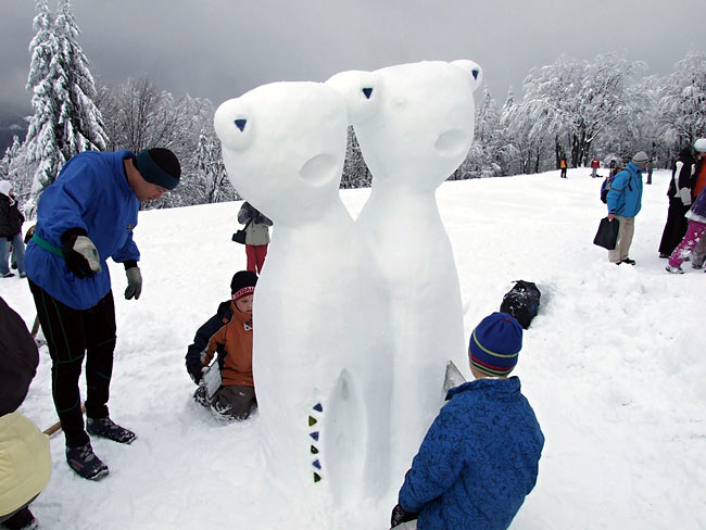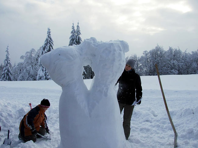 Každá škola měla k dispozici dva sněhové bloky. My jsme tvořili díla nazvaná