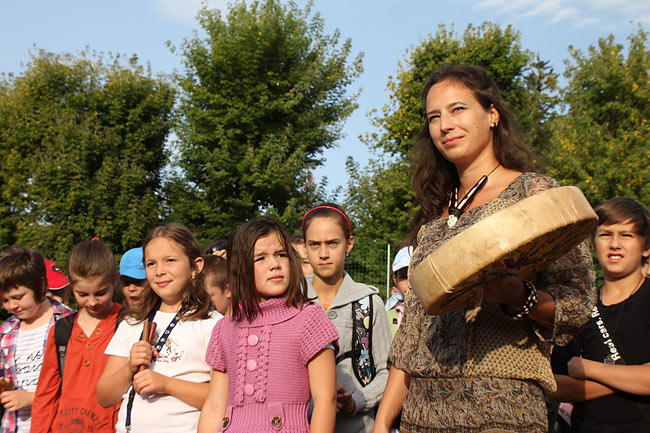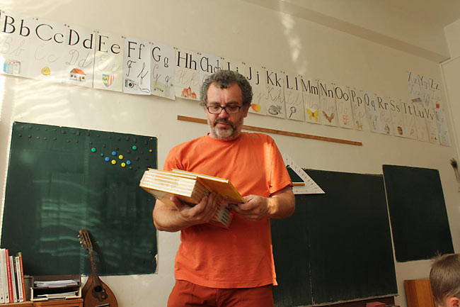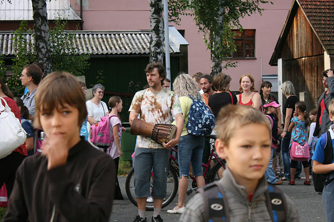 Třídní učitelé postupně bubny udávali rytmus třídy, až se rytmy slily v tep celé školy. Nakonec se chrastěním rumbakoulí přidali i novopečení prvňáčci. Když rytmus utichl, ředitel školy představil již zmíněné CD a poté jsme se vydali kolem polikliniky do školní budovy.