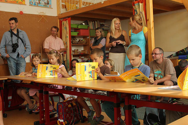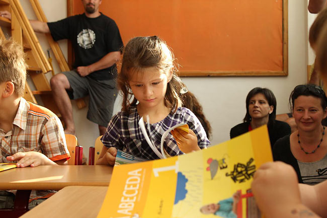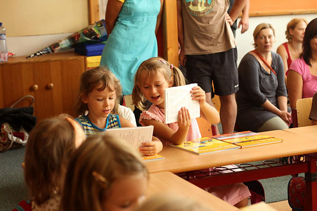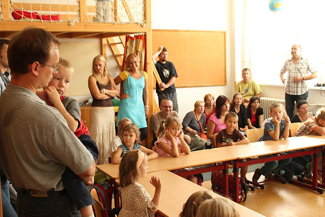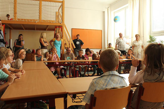 První den školy nejvíce prožívali čerství žáčci 1. třídy. Seznámili se se svou učebnou a učitelem, představili se sobě navzájem a nafasovali hromadu učebnic. Školní rok může začít…