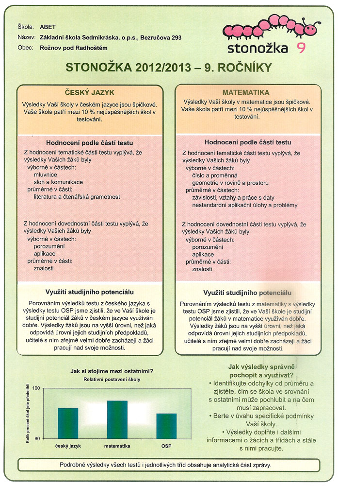 Jejich výsledky byly výborné, umístili se mezi 10% nejúspěšnějších škol.