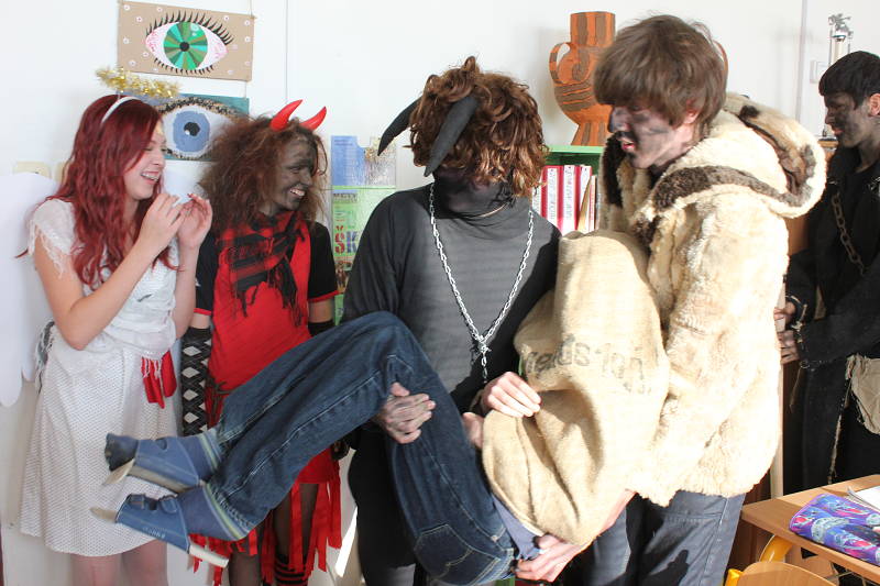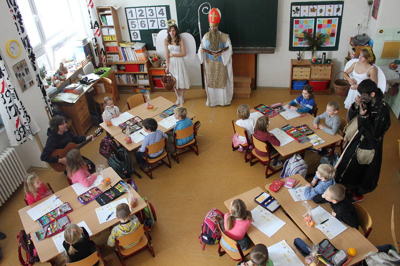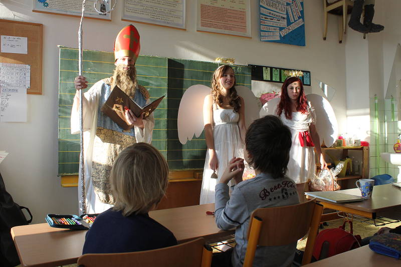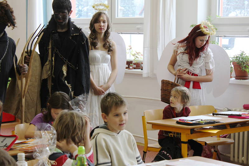 Jako každý rok i letos se ve třídách nečekaně objevil Mikuláš s družinou andělů a čertů. Opět se mluvilo do duše i utěšovalo, nadělovalo i veselilo. Příchod Mikuláše, nebešťanů a pekelníků nadělal ve třídách pořádný rozruch, jen do 9. třídy kupodivu nikdo nepřišel… Že by netrefili?