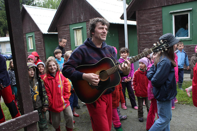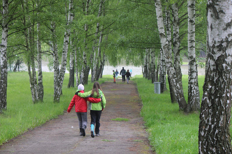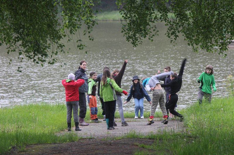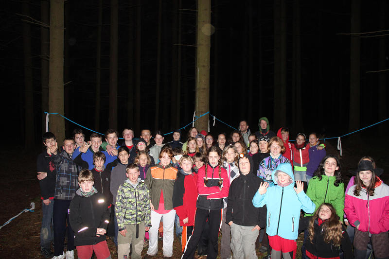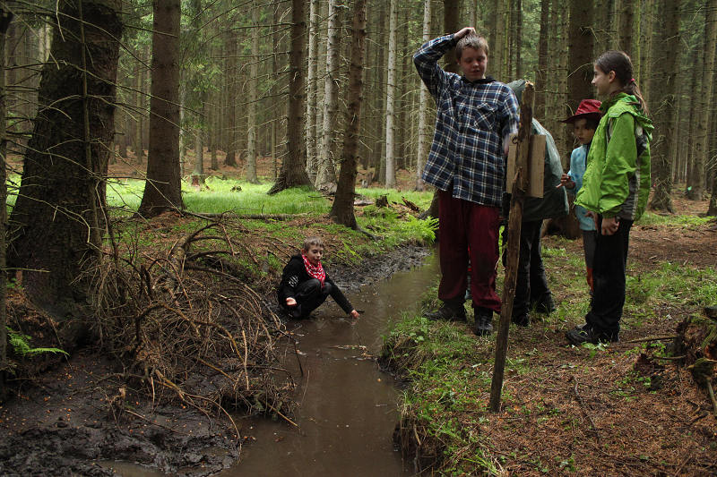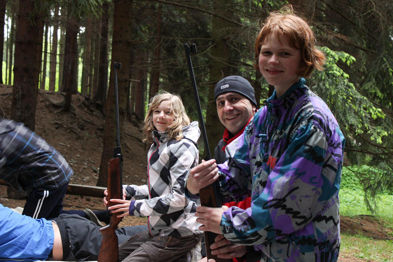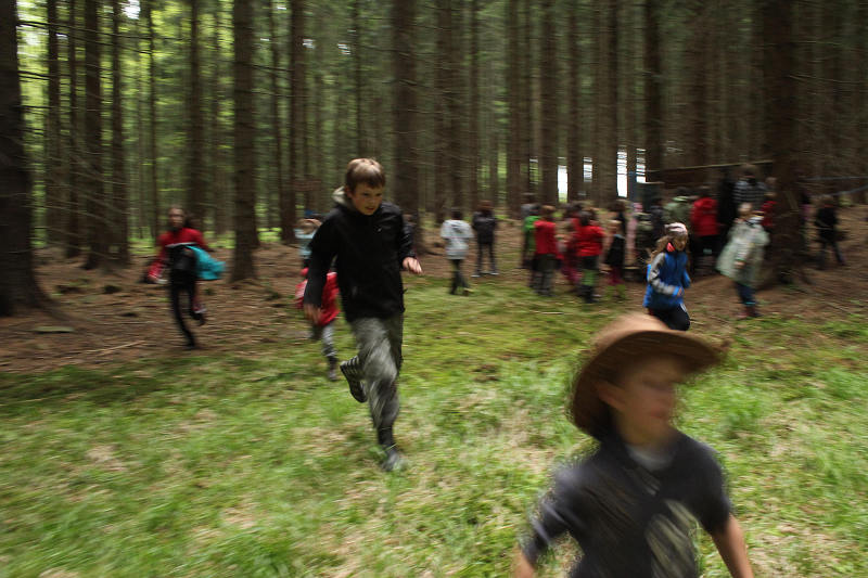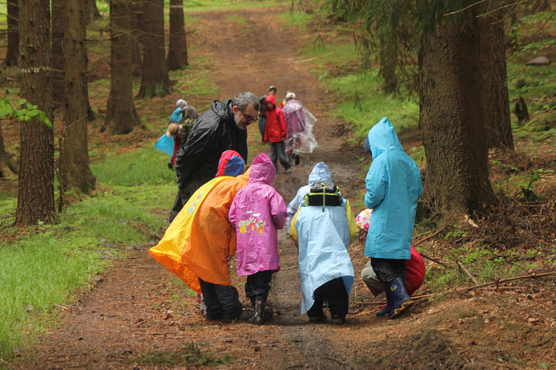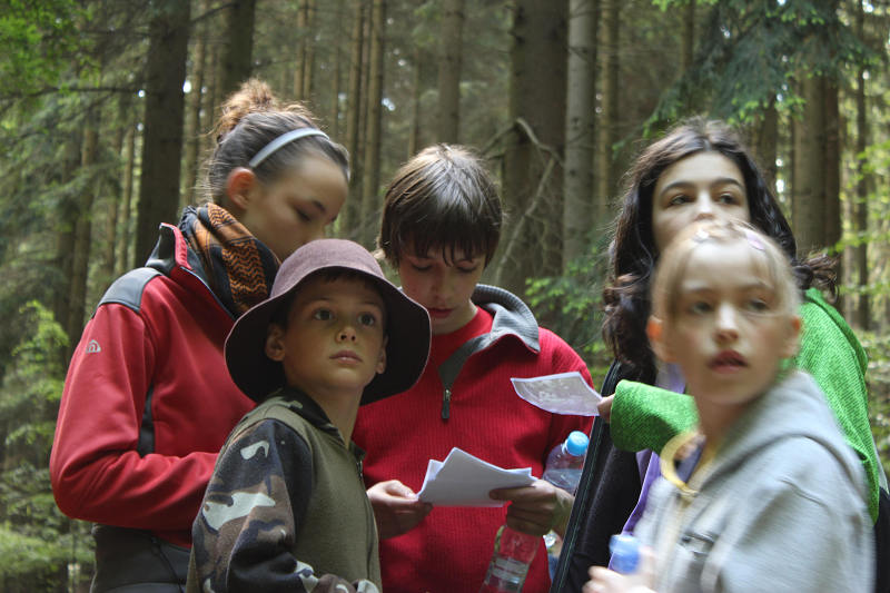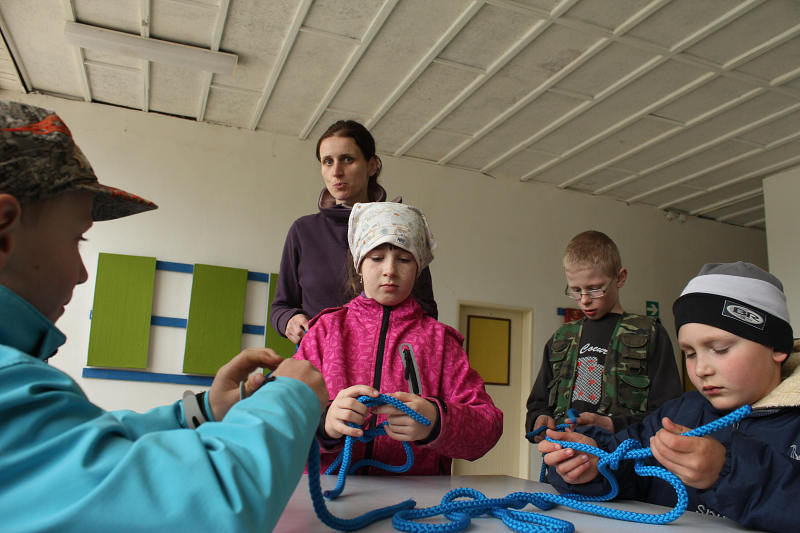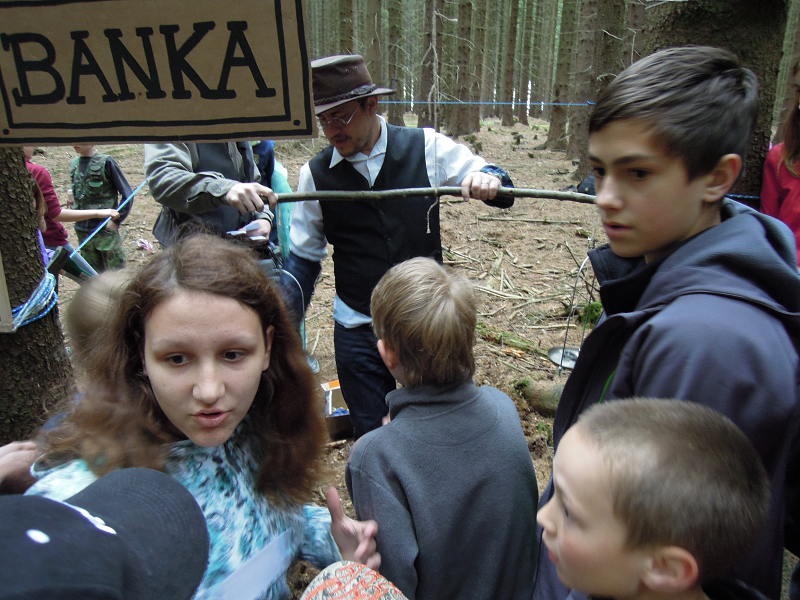Po příjezdu se všichni ubytovali a seznámili se s prostředím tábora. Jeho okolí jsme propátrali v rámci prověřené obálkové hry – postavičky v barevných pláštěnkách putovaly lesy a loukami a plnily vylosované úkoly. K večeru bylo dost času na sport či výtvarnou činnost, pro ty větší byla připravena noční hra.