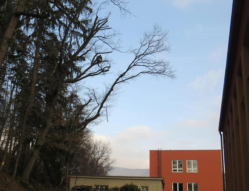 na nějaké lezecké stěně, mohl vidět pěknou akrobacii ve 20 metrech nad zemí,