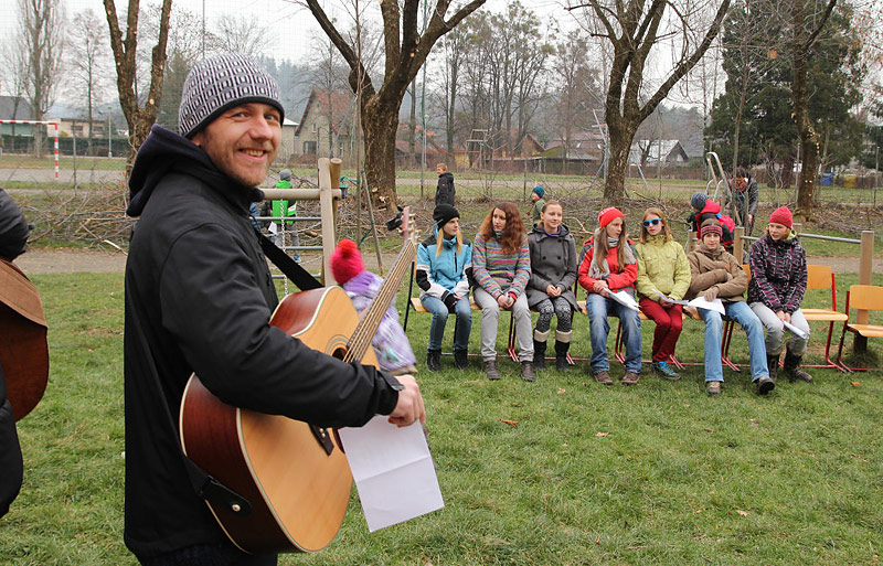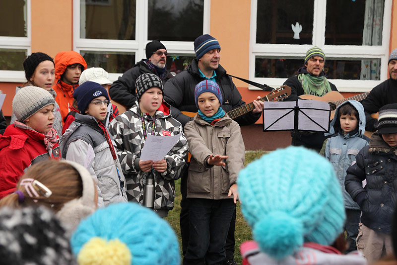 V poslední školní den roku 2013 se celá Sedmikráska shromáždila na prostranství