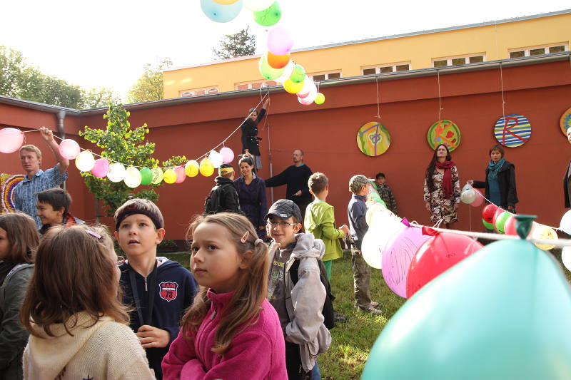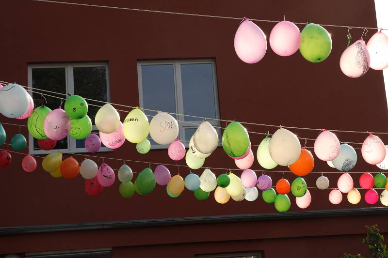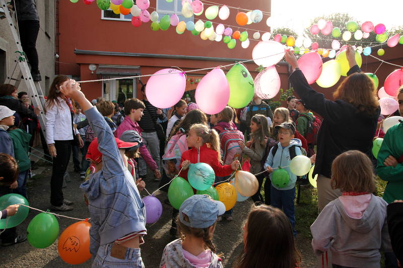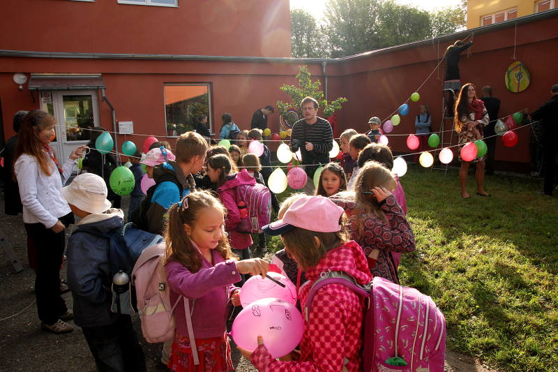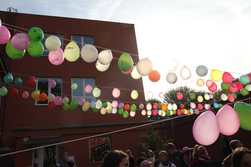 Každé prázdniny jednou skončí a totéž se přihodilo i těm letošním. 2. září jsme se sešli v sestavě žáci, učitelé a rodiče, abychom školní rok jaksepatří nastartovali. K prvnímu dni na Sedmikrásce vždy patří nějaký rituál – tentokrát jsme zákoutí u vchodu do školy ověšeli šňůrami s vlastnoručně pokreslenými balónky. Snad nám přinesou štěstí…