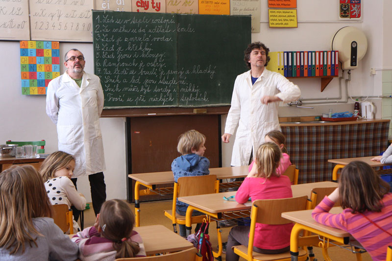 Se třeťáky a čtvrťáky jsme pod vedením doc. Zmrzlého a Ing. Krusty zkoumali vlastnosti sněhu a ledu. Hledali jsme odpovědi na tyto otázky: