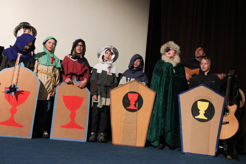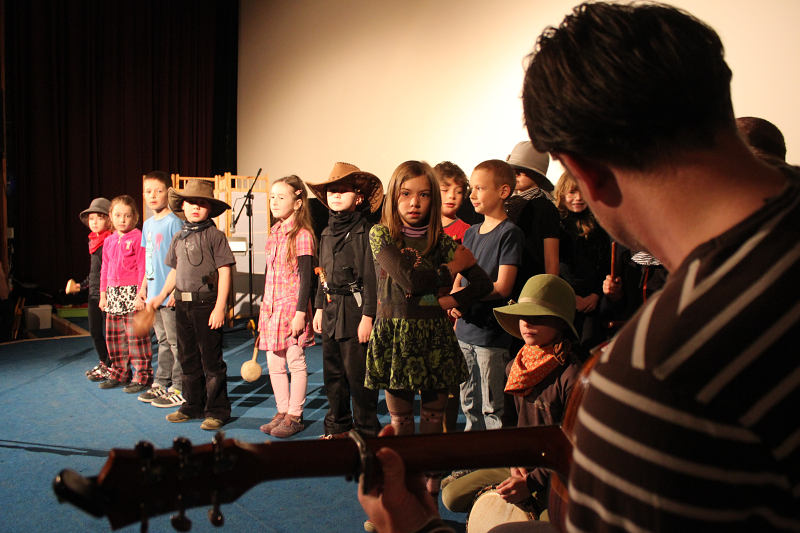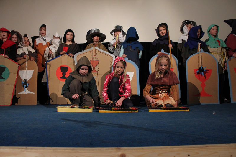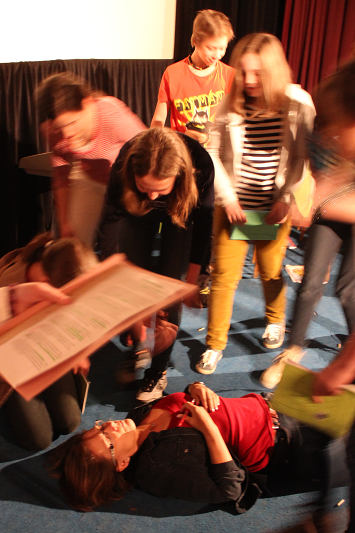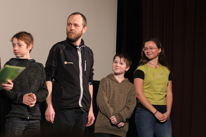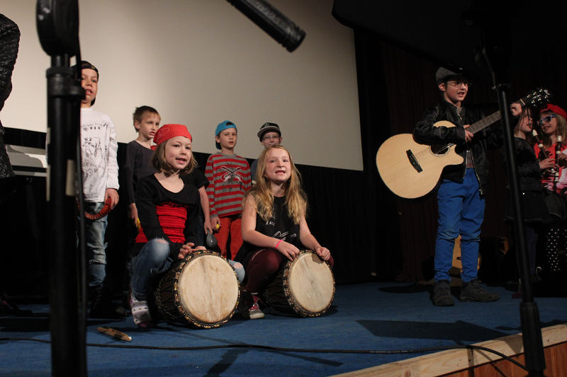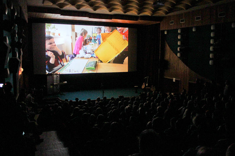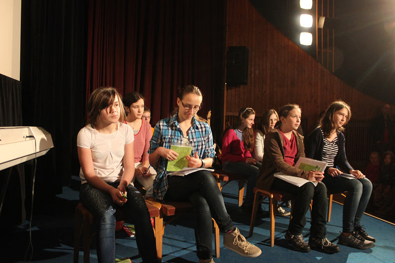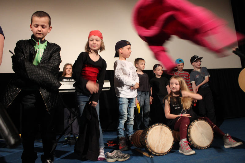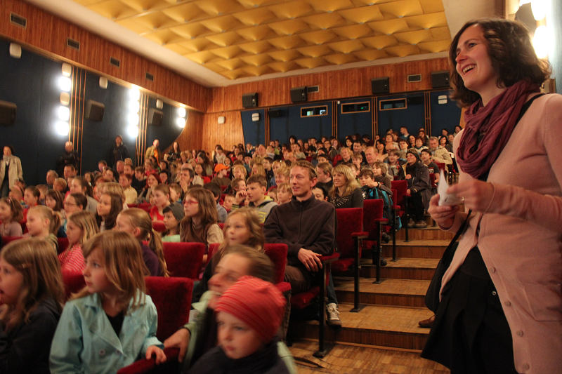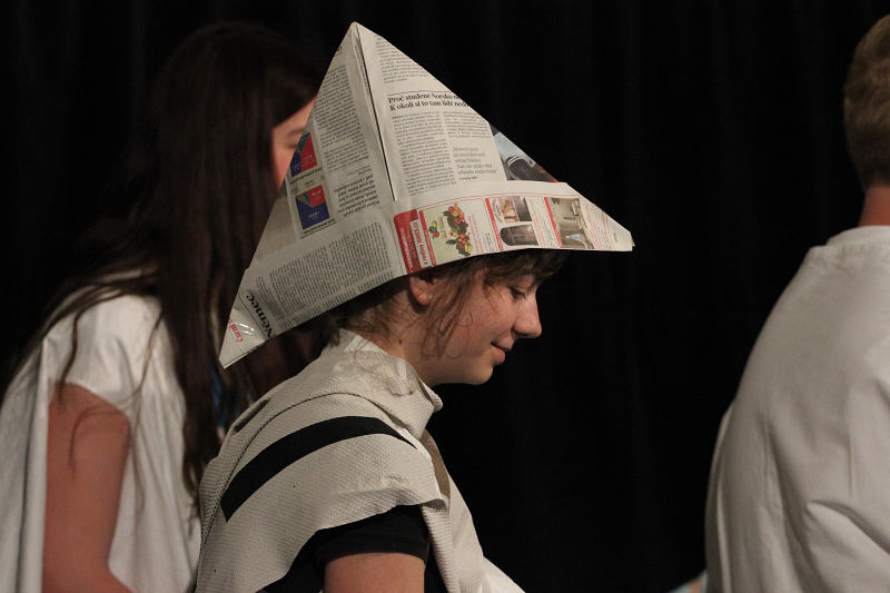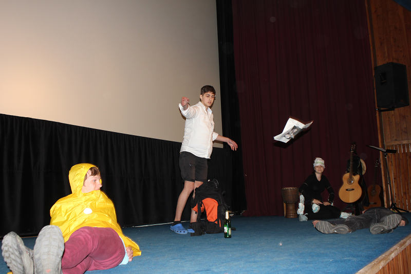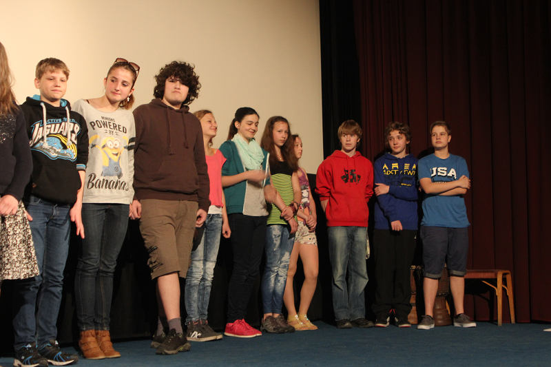 První část slavnosti se odehrávala v rožnovském kině. Programy tříd byly tentokrát z velké části filmově zaměřeny, došlo však i na muziku a divadlo. Jednotlivým vystoupením nechyběl humor, ale došlo i na "poučení". Už víme, co je to defenestrace, jak se kreslí nohama a jak dlouho se rozkládá zelí :-)