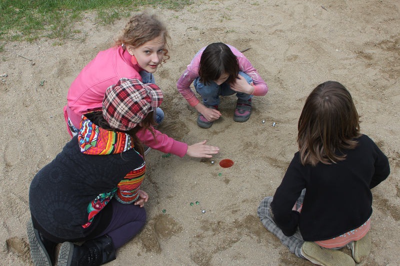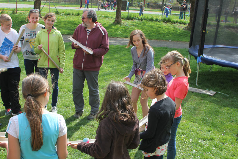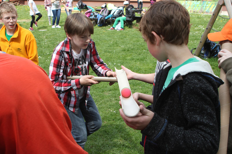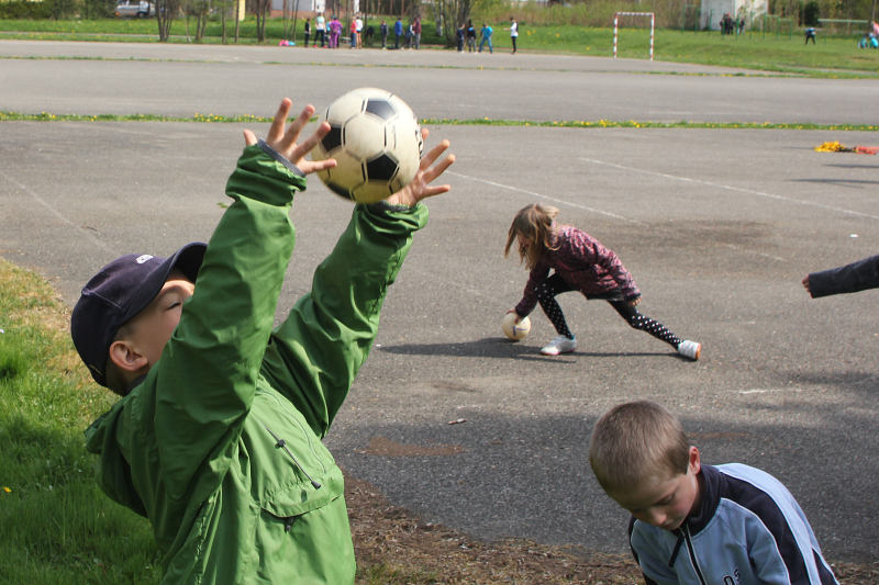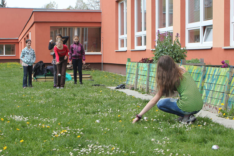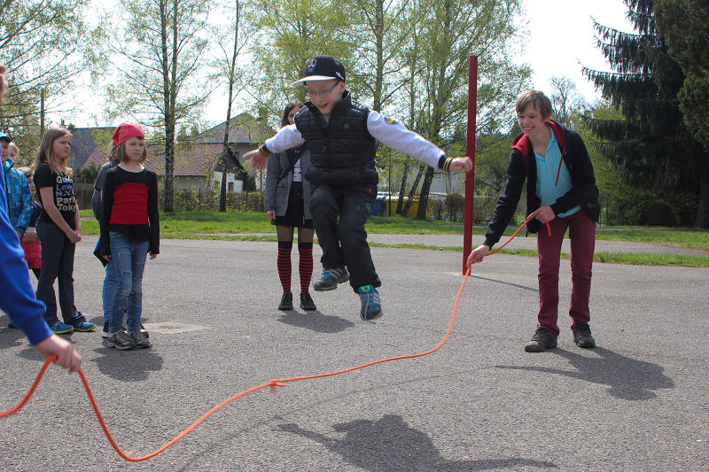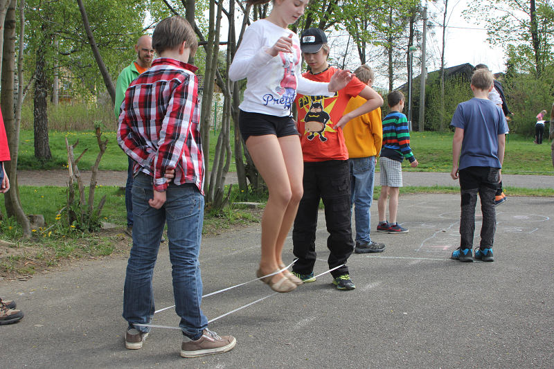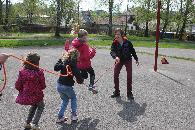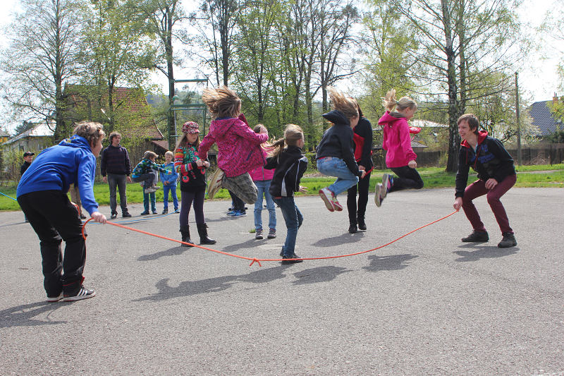 Po ukončení přehlídky jsme se přesunuli za školu. Starší žáci nachystali pro ty mladší řadu her a pohybových činností. Děti střídaly stanoviště, aby si vyzkoušely všechny připravené aktivity.