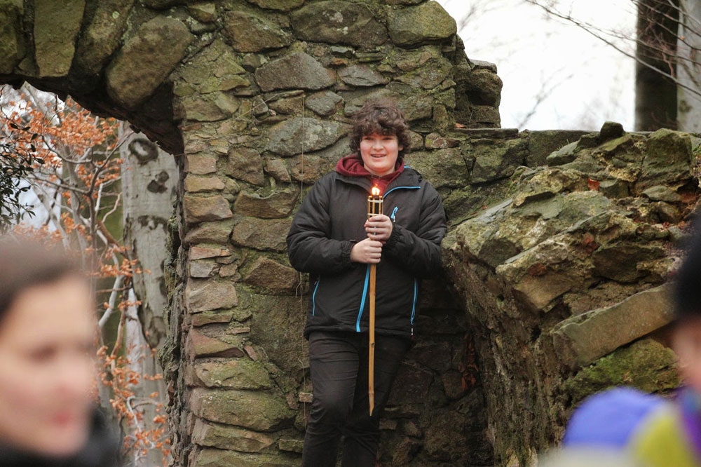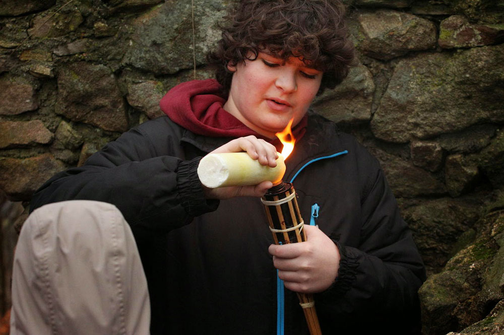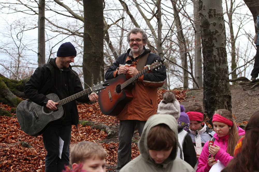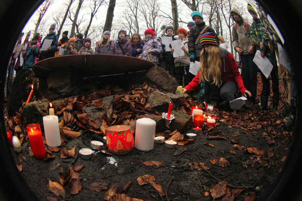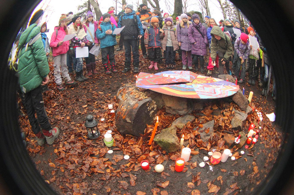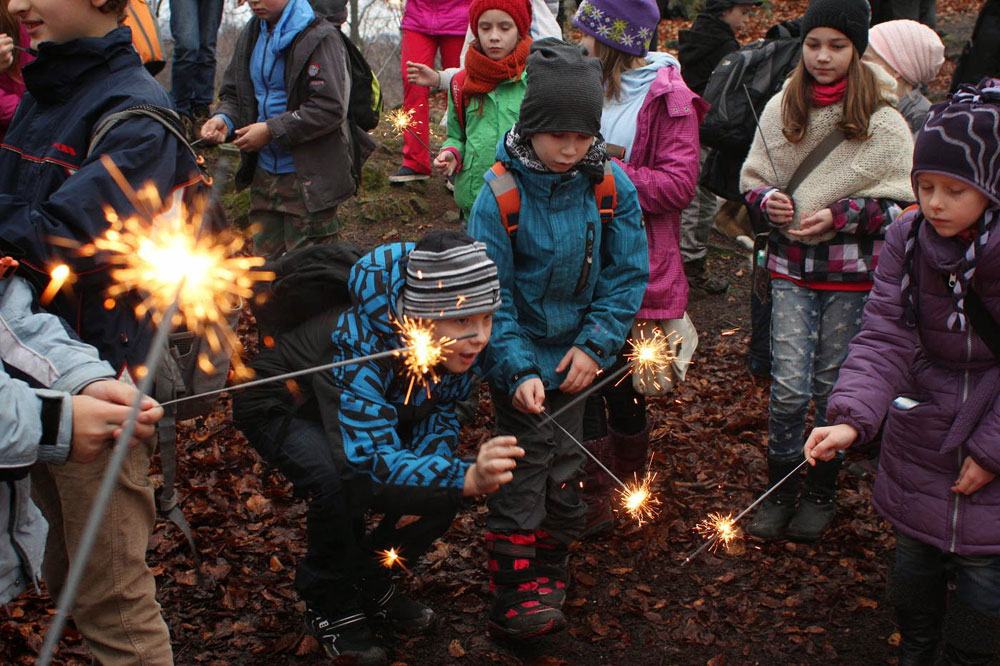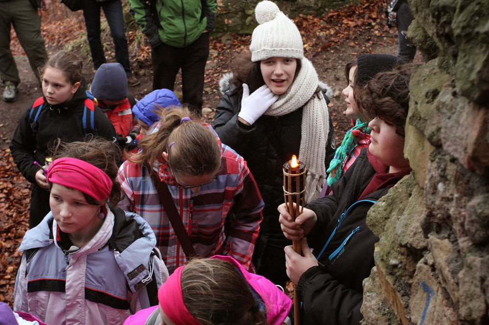 Na poslední vyučování v roce 2014 jsme opustili školní budovu a sešli se na panelové cestě pod Hradiskem. Cestou na rožnovský hrad jsme nakrmili divou zvěř (i kocoura ze statku) a shromáždili se před hradní bránou. Po odeznění písně v podání Anetky, Věrky a Jirky jsme vstoupili na území Vánoc. Zazpívali jsme si několik zimních a vánočních písniček, zapálili svíčky a prskavky a popřáli si do Nového roku. Nakonec jsme uhasili ohně, uklidili a vrátili se zpátky do města. Prázdniny začaly...