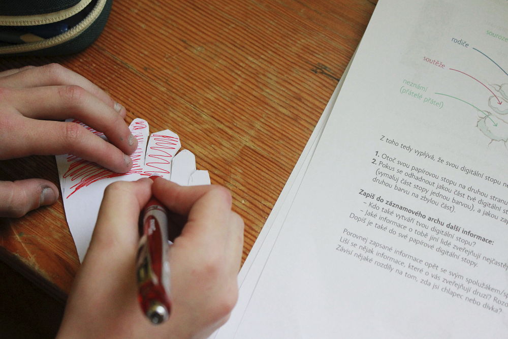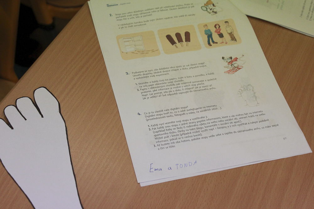 Stejně jako za sebou zanecháváme stopy ve sněhu nebo v blátě, zanecháváme za sebou i digitální stopu na internetu. Prostřednictvím textů, fotografií, videa a na sociálních sítích. Na rozdíl od stop ve sněhu může naši digitální stopu tvořit i někdo jiný než my sami. Rodiče, sourozenci, škola, učitelé, sportovní kluby, kroužky, kamarádi, neznámí lidé, ... V čem se shodují a v čem se liší naše stopy v běžném a digitálním světě? Proč o sobě vystavujeme informace na internetu? Jaké osobní informace na internet nepatří? Jsou lidé dost opatrní a zodpovědní při tvorbě digitálních stop ostatních? Na tyto a další otázky hledali žáci páté třídy odpovědi v hodinách informatiky.